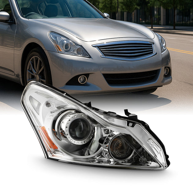 AKKON - Fits 2008-2012 Infiniti EX35 2013 EX37 2014-2017 QX50 [Halogen Type] Projector Chrome Headlight Driver Left Side
