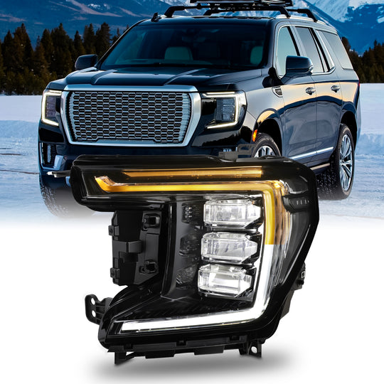 AKKON - Fits 2021-2023 GMC Yukon XL SLE | SLT Full LED Chrome Headlight w/ Switchback Running Turn Signal Driver Left