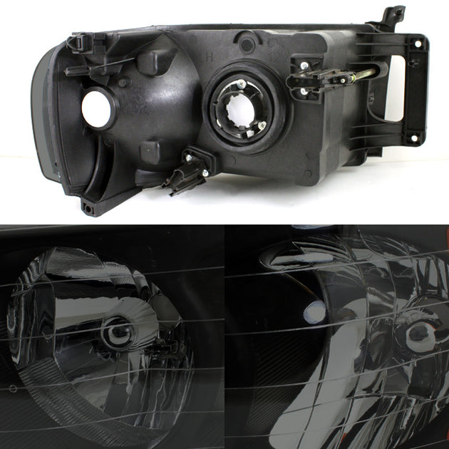 AKKON - For Black Smoked 2002-2005 Ram 1500 03-05 2500 3500 Headlights Front Lamps Replacement Pair Left + Right