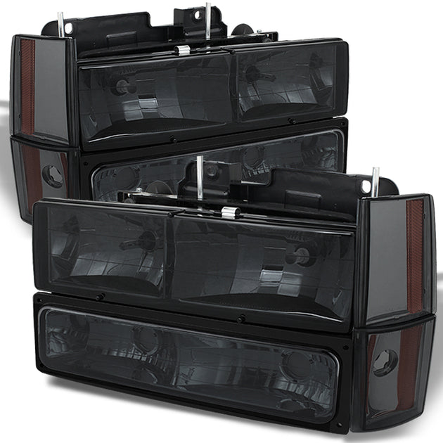 AKKON - For Chevy C/K Series Silverado Suburban Tahoe Pickup Truck Smoked Lens Headlight + Bumper + Corner Light Set