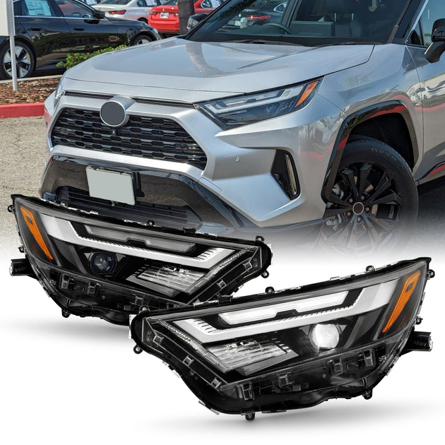 AKKON - Fits 2022-2024 Toyota RAV4 [LED Hi-Lo Beam] Black Headlights Pair Driver+Passenger w/Halogen Signal Replacement