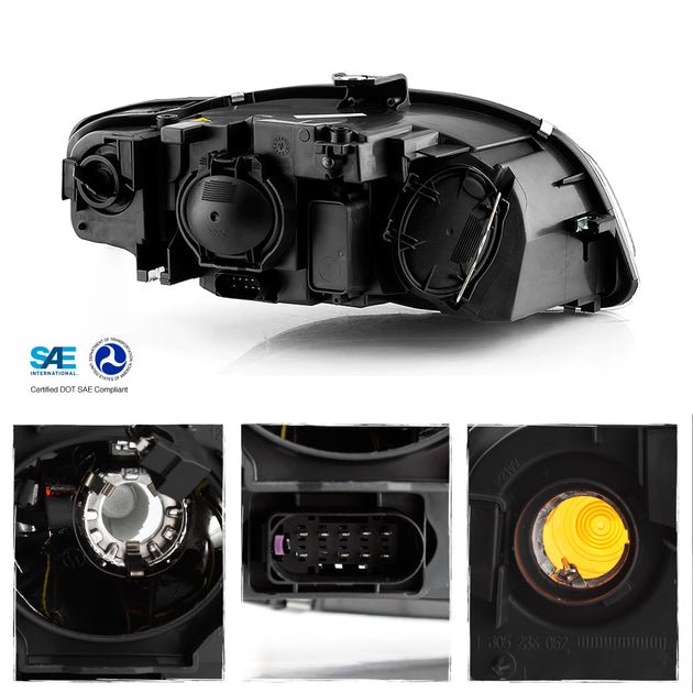 AKKON - Fits 2005-2009 Audi A4 S4 2007-2008 RS4 2009 Cabriole Halogen Style Headlamps Left+Right Pair Black Headlights