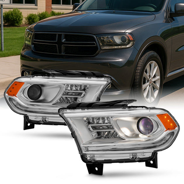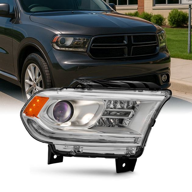 AKKON - Fit 2014 2015 2016 2017 Dodge Durango [Halogen Type] Non-DRL Models OE Style Projector Headlight Headlamp Replacement Chrome
