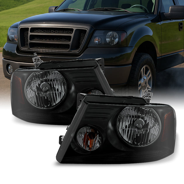 AKKON - For Black Smoke 04-08 F150 06-08 Linclon Mark LT Headlights Front Lamps Replacement Pair Left + Right