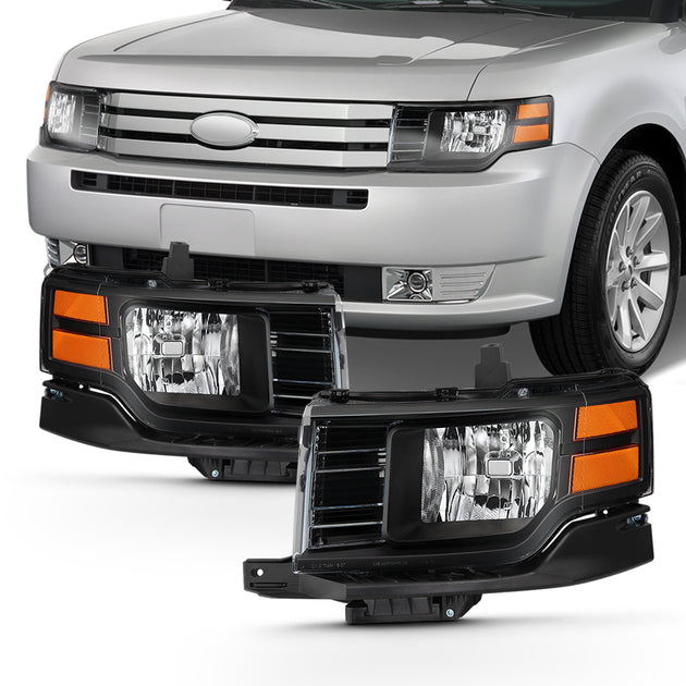 AKKON - Fits 2009 2010 2011 2012 Ford Flex SE SEL [Halogen Type] Black Headlights w/ Amber Side Signal Lamp Pair Left+Right