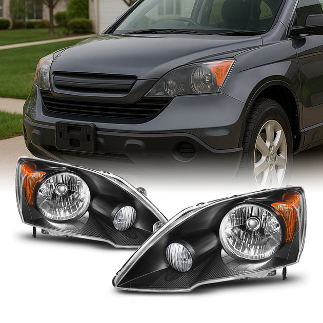AKKON - For [Black] 2007 2008 2009 2010 2011 Honda CRV CR-V Driver and Passenger Side Headlights Pair
