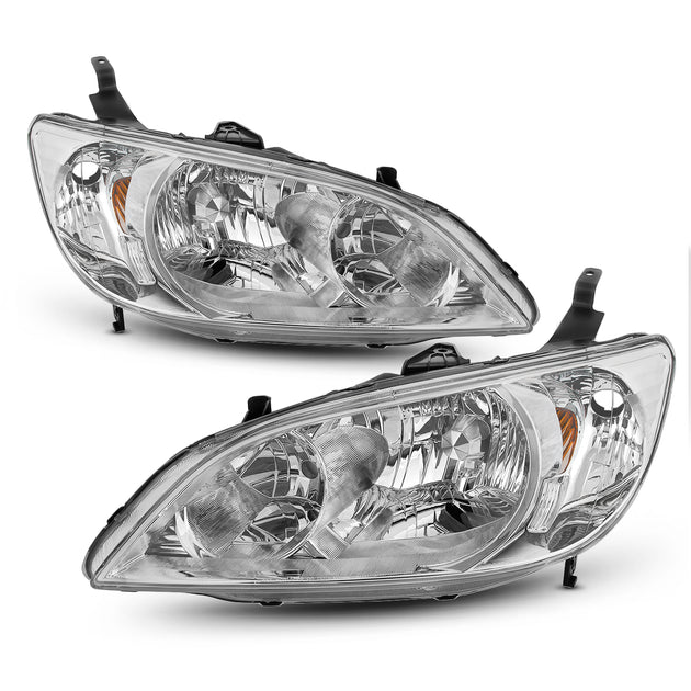 AKKON - Fits 2004 2005 Honda Civic Headlights Front Headlamps Pair Direct Replacement