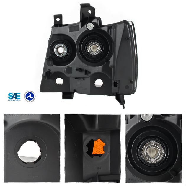 AKKON - Fits 2007-2013 14 Chevy Tahoe Suburban Avalanche Model Black Headlights [Halogen Type] Right Passenger Side