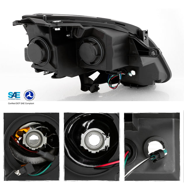 AKKON - Fit 2006-2011 Chevy HHR Halogen Type Headlights Headlamp with LED Bar Black Housing Replacement Driver - Passenger