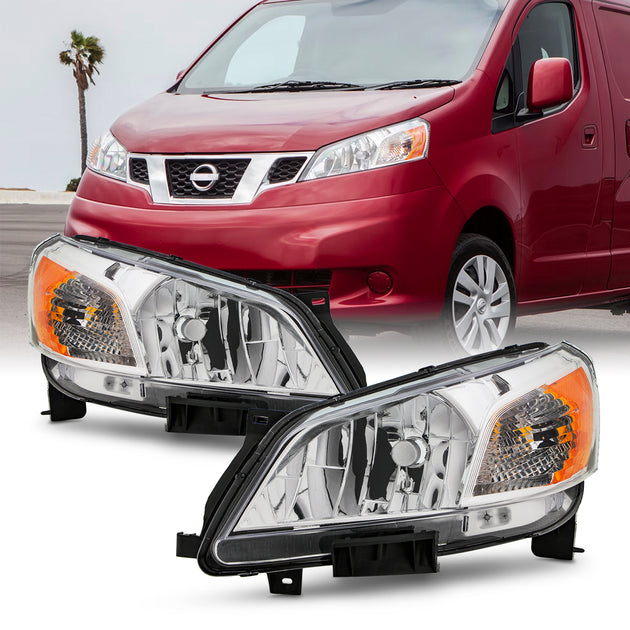 AKKON - Fits 2013-2021 Nissan NV200 Halogen Type Chrome Clear Headlights Pair Driver Left+Passenger Right Replacement