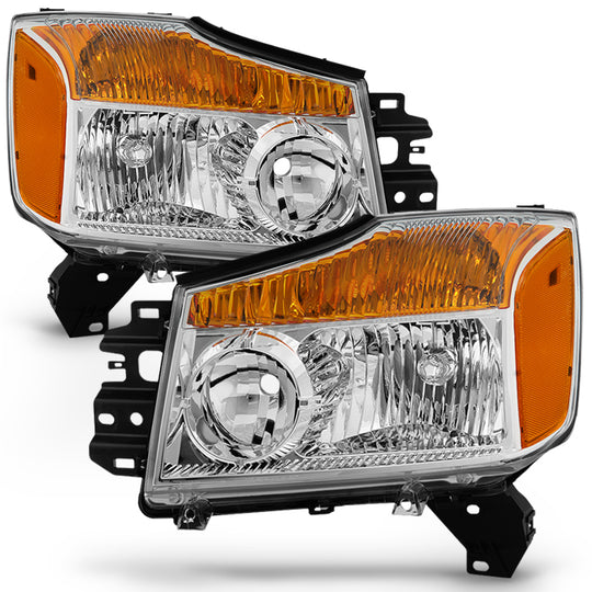 AKKON - For 04-15 Titan Pickup Truck 05-07 Armada Chrome Clear Headlights Front Lamps Direct Replacement Left + Right