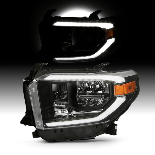 AKKON - Fits 2018 2019 2020 Toyota Tundra Pickup w/ DRL LED [Tube Bar] Black Headlight Headlamp Driver Left Side Replacement