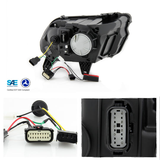 AKKON - For 2010-2014 Ford Mustang LED Light Bar DRL Chrom Housing Projector Headlights Left + Right