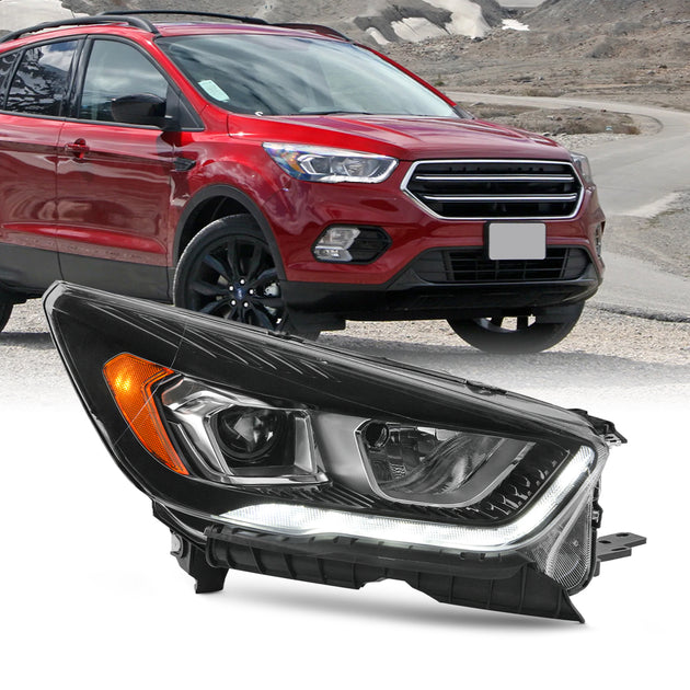 AKKON - Fits 2017-2019 Ford Escape [Halogen Type] Projector Black Bezel Headlight Passenger Right Side w/LED DRL Running