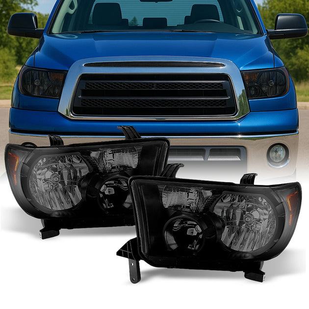 AKKON - For Black Smoke 2007-2013 Tundra 08-17 Sequoia Headlights Front Lamps Direct Replacement Left + Right