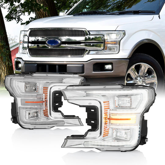 Regular price $698.99SKU: HD-JH-FF15018-FLED-OE-L_HD-JH-FF15018-FLED-OE-R This is a 100% brand new pair of Replacement Headlights in Chrome Housing with Clear Lens Compatible With: 2018-2020 Ford F150 with Full LED Chrome Bezel Headlight Models ATTN: Compatible with Full LED Chrome... -