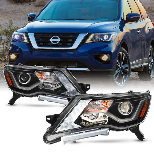 AKKON - Fit 2017-2020 Nissan Pathfinder OE Style Halogen Type LED DRL Projector Headlight Headlamp Assembly Left+Right