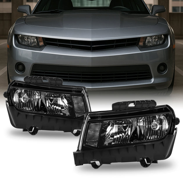 AKKON - Fits 2014-2015 Chevy Camaro [Halogen Type] Black Headlight Headlamp Driver Left+Passenger Right Pair Replacement