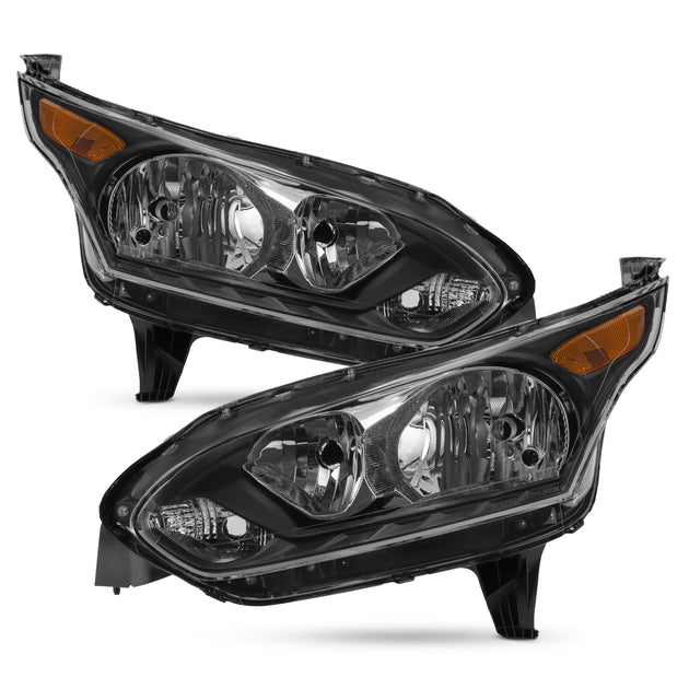 AKKON - Fits 2014-2018 Ford Transit Connect [Halogen Type] Black Headlights Pair Driver Left+Passenger Right Replacement