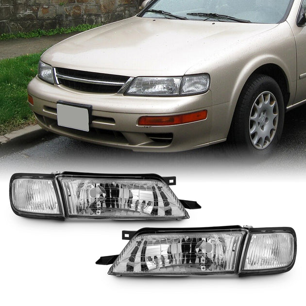 AKKON - Fits 1997-1999 Nissan Maxima Halogen Chrome Headlights w/ Corner Signal Lamp Pair Driver+Passenger Replacement