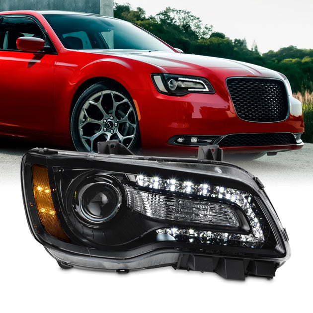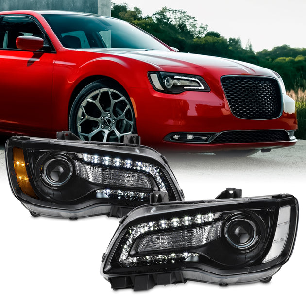 AKKON - Fit 2015-2023 Chrysler 300 Halogen Type Projector Headlight Black Bezel OE Style Driver + Passenger