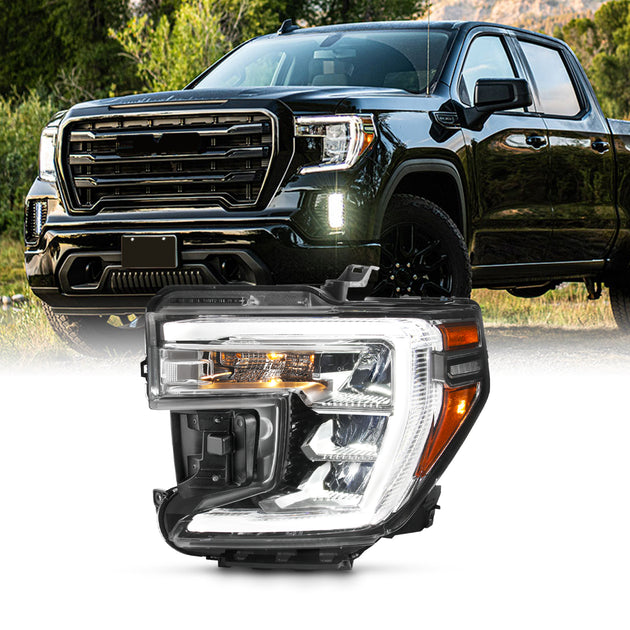 AKKON - Fit 2019 2020 2021 2022 GMC Sierra 1500 LED DRL Headlight w/Halogen Type Signal Chrome OE Style Drive Left Side