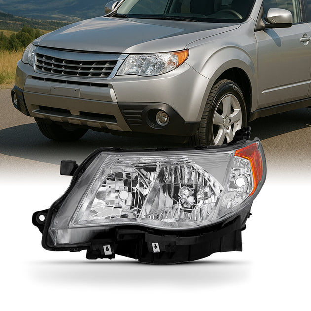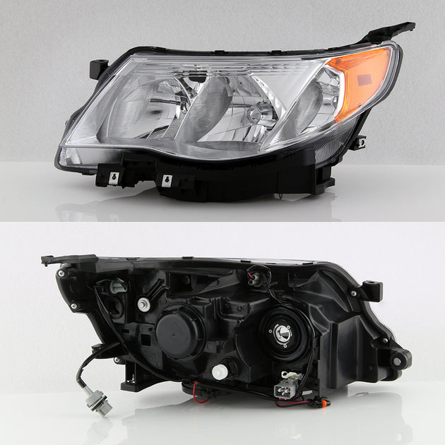 AKKON - For 2009-13 Subaru Forester Dirver Side Only Halogen Headlights Assembly Chrome Housing Clear Lens