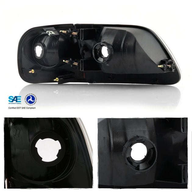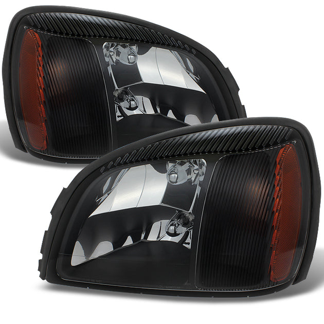 AKKON - Fits 1997-2002 Ford F150 Expedition 97-99 F250 2004 F-150 Heritage [Halogen Type] Black Clear Headlights Pair Left+Right