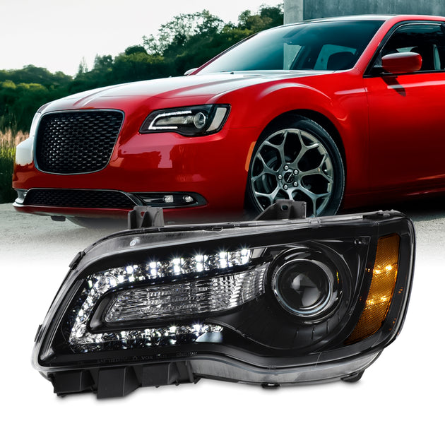 AKKON - Fit 2015-2023 Chrysler 300 Halogen Type Projector Headlight Black Bezel OE Style Driver Left Side