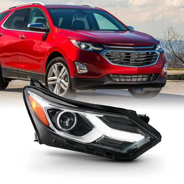 AKKON - Fits 2018 2019 2020 2021 Chevy Equinox [HID/Xenon Type] LED DRL Black Headlight Passenger Right Side Headlamp 18 19 20