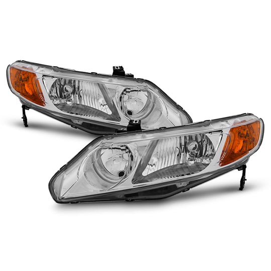 AKKON - Fits 2006-2011 Honda Civic Sedan 4-Door Chrome Headlights Pair Driver+Passenger w/ Amber Corner Lamp
