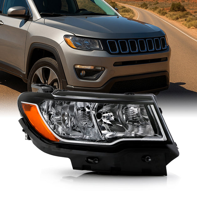 AKKON - Fits 2017-2021 Jeep Compass Halogen OE Style Headlights - Passenger Right Black Housing Replacement