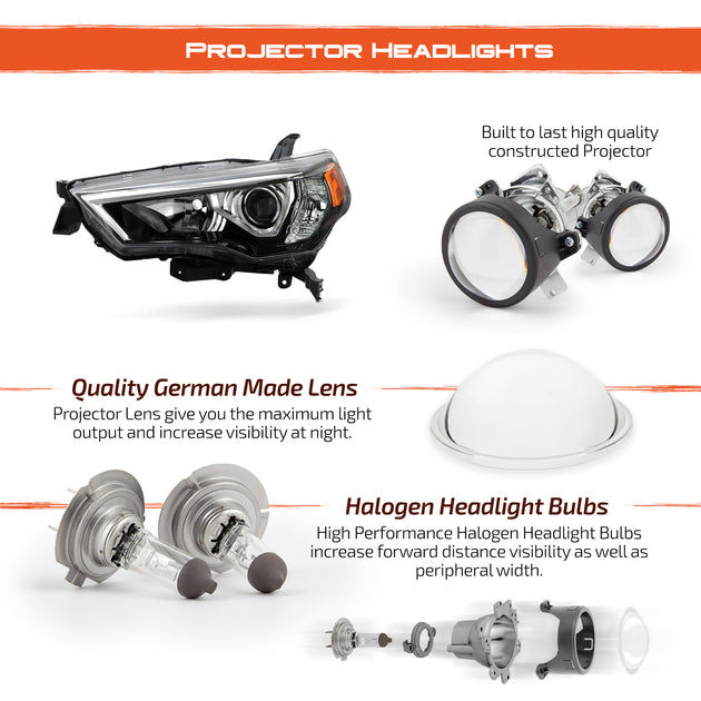 AKKON - Fits 2014-2023 Toyota 4Runner Projector Headlights OE Style Chrome Housing Pair Assembly