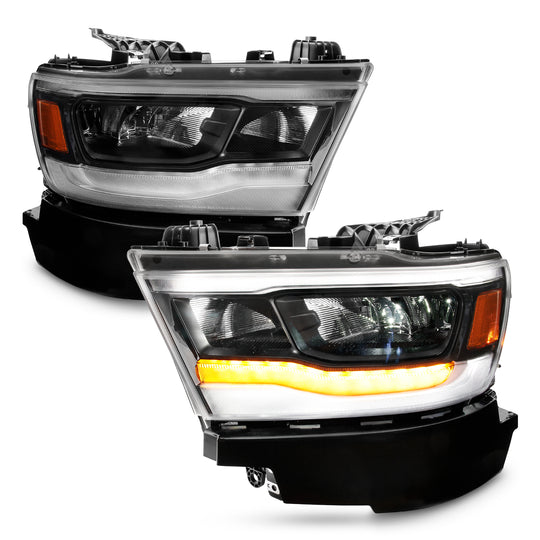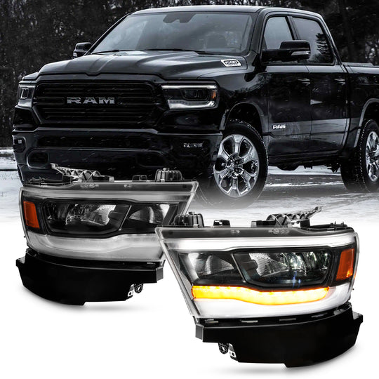 Regular price $365.99This is a 100% brand new pair of Replacement Headlights in Black Housing Compatible With: 2019-2023 Ram 1500 Full LED DRL Style w/ Black Bezels Reflector Models ATTN: Compatible with Black Bezels LED Reflector Models Only... -