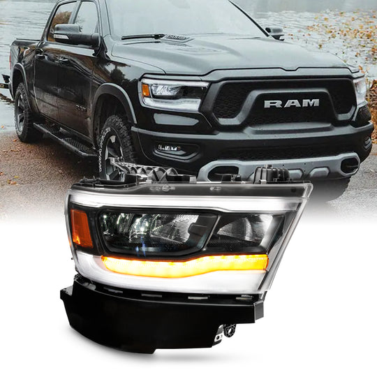 Regular price $185.99This is a 100% brand new piece of Replacement Headlight in Black Housing Compatible With: 2019-2023 Ram 1500 Full LED DRL Style w/ Black Bezels Reflector Models ATTN: Compatible with Black Bezels LED Reflector Models Only...
