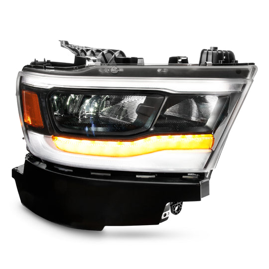 AKKON - Fits 2019-2023 Ram 1500 [Full LED] Tube DRL Running Signal Headlight w/ Black Bezel Reflector Passenger Right
