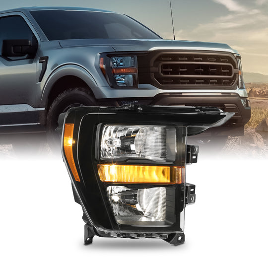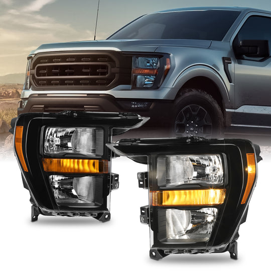 Regular price $338.99SKU: HD-JH-FF15023-OE-BK-L+HD-JH-FF15023-OE-BK-R This is a 100% brand new Pair of Headlights Replacement Assemblies in Black Housing With Clear Lens Compatible With: 2021-2024 Ford F150 Compatible with Factory Halogen Headlight Model Only ATTN: Not Compatible with Factory... -
