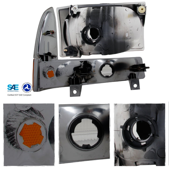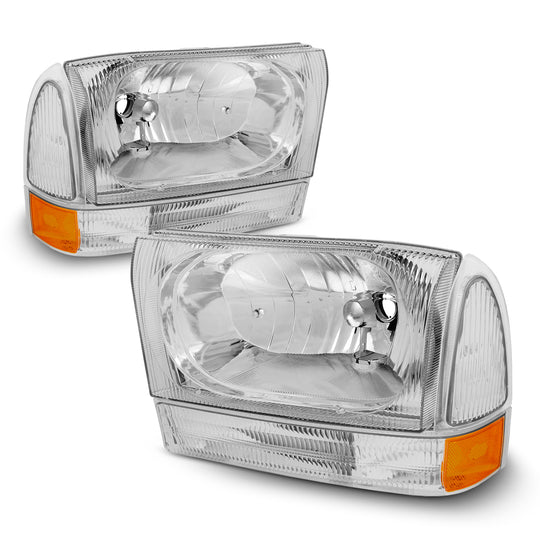Regular price $89.99This is a 100% brand new pair of Headlights Replacement Assemblies in Polished Chrome Housing With Crystal Clear Lens Compatible With: 1999-2004 Ford Excursion F250 F350 F450 F550 Superduty All Models ATTN: Not Compatible w/ Factory... -