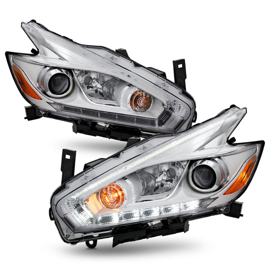 AKKON -Fits 2017-2018 Nissan Murano [LED DRL Running] Projector Chrome Headlights Pair Driver Left+Passenger Right 17 18