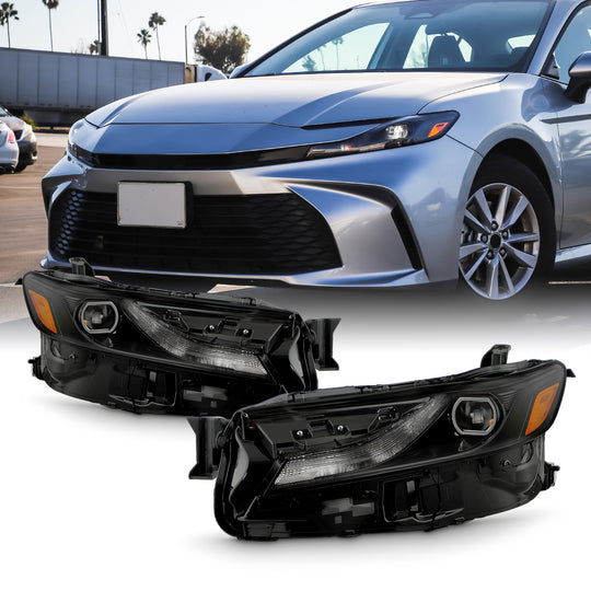 AKKON - Fits 2025-2026 Toyota Camry LE / SE Sedan [LED Type] Black Headlights Headlamps Pair Driver Left+Passenge Right