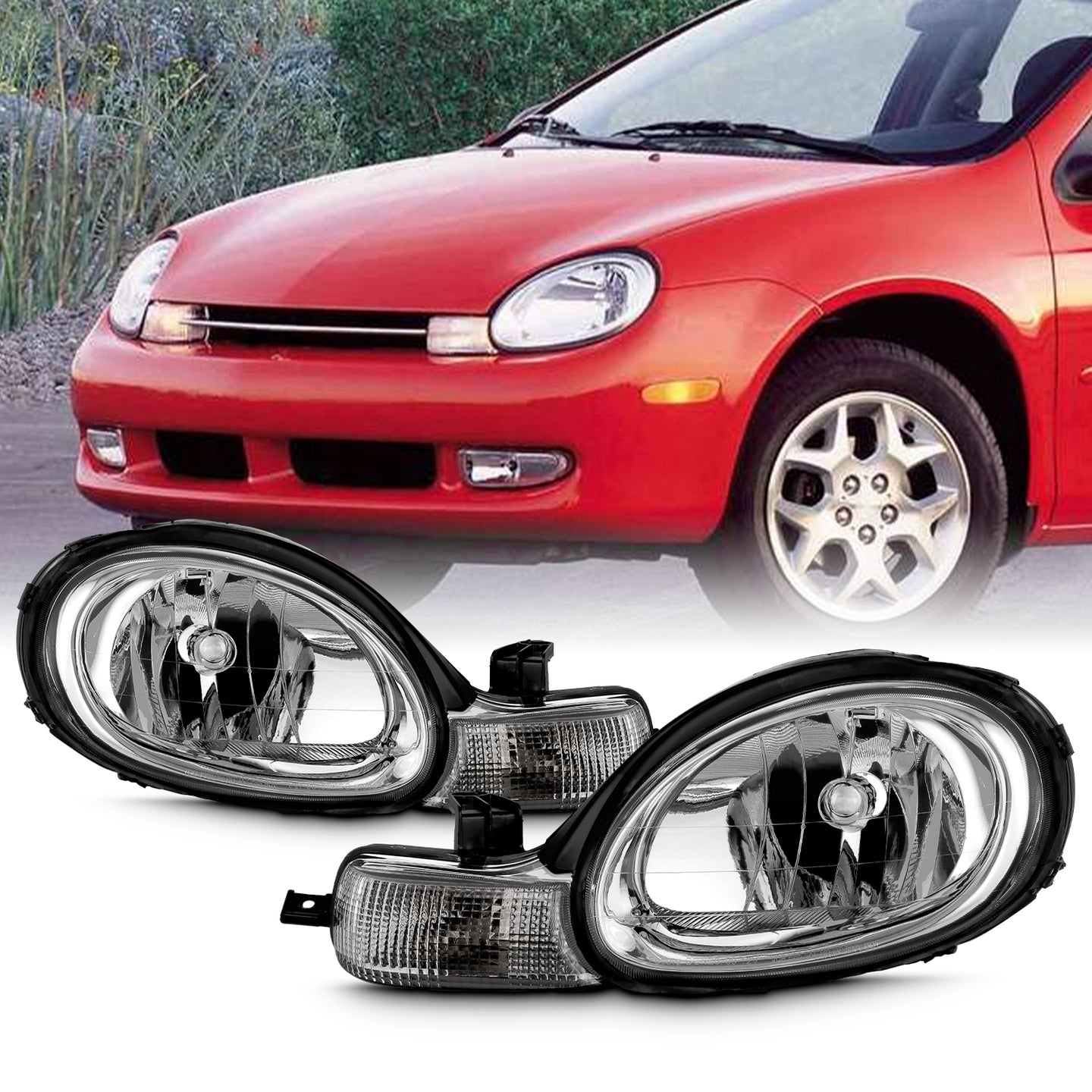 AKKON - Fit 2000 2001 2002 Dodge Neon 00-02 Halogen Type Headlights Headlamp Chrome Housing Driver - Passenger OE Style Direct Replacement
