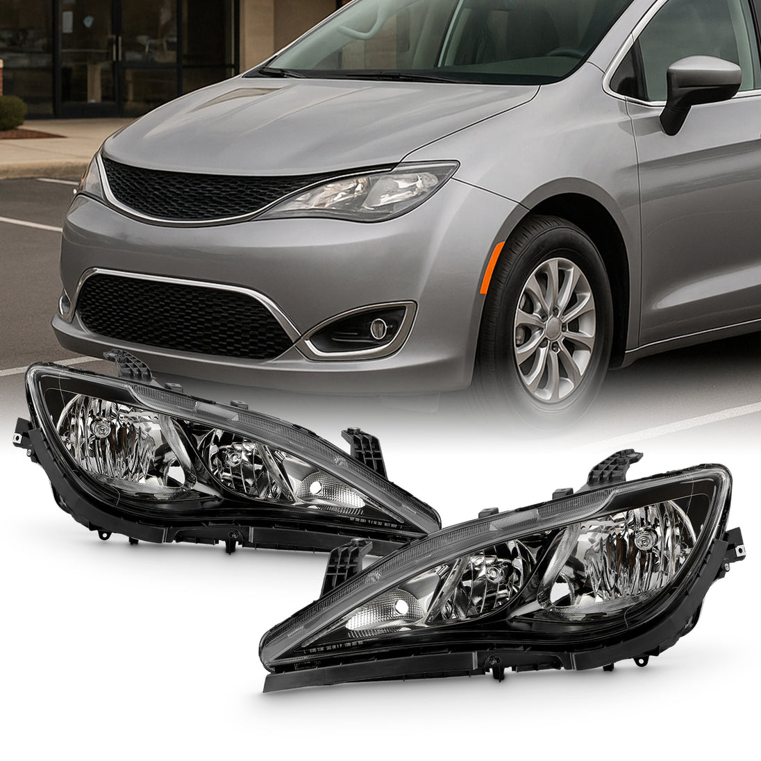 AKKON - Fit 2017 2018 2019 2020 Chrysler Pacifica 17-20 Halogen Type Headlight Headlamp OE Style Chrome Housing Driver - Passenger Direct Replacement