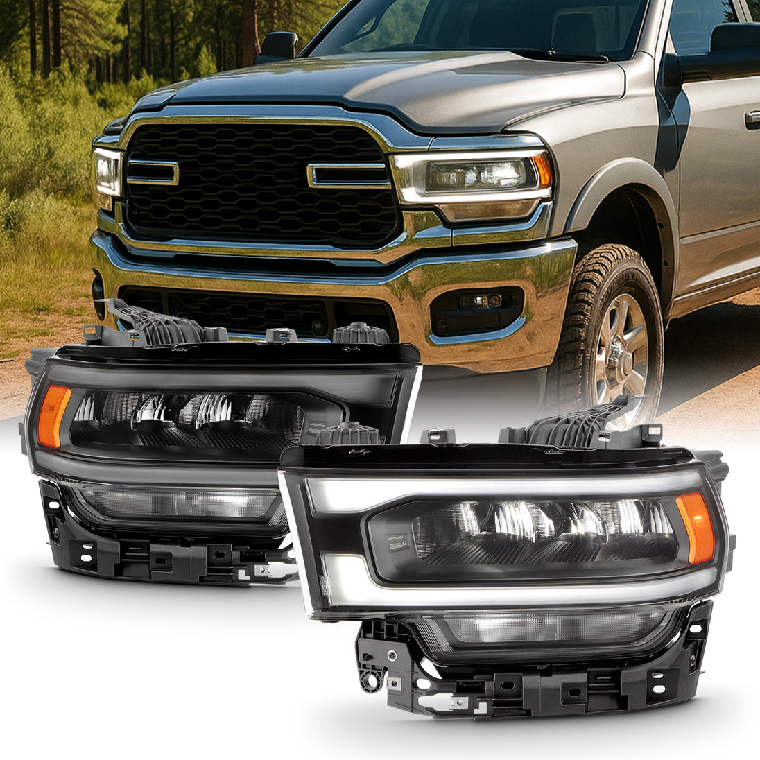 AKKON - Fit 2019 2020 2021 2022 2023 2024 Dodge Ram 2500/3500 19-24 w/Halogen Signal Black Bezel LED Reflector Headlight OE Style Driver - Passenger