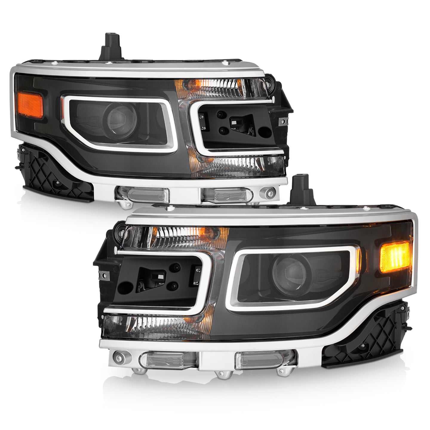 This is a 100% brand new Pair of Headlights Replacement Assemblies in Black Housing With Clear Lens
