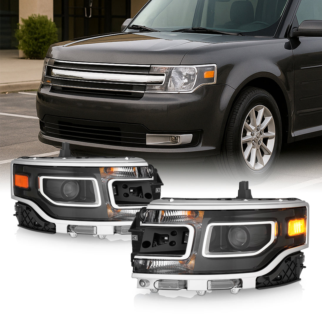 AKKON - Fit 2013-2019 Ford Flex 13-19 Xenon|HID w/LED DRL Black Housing Projector Headlights OE Style Driver - Passenger Direct Replacement