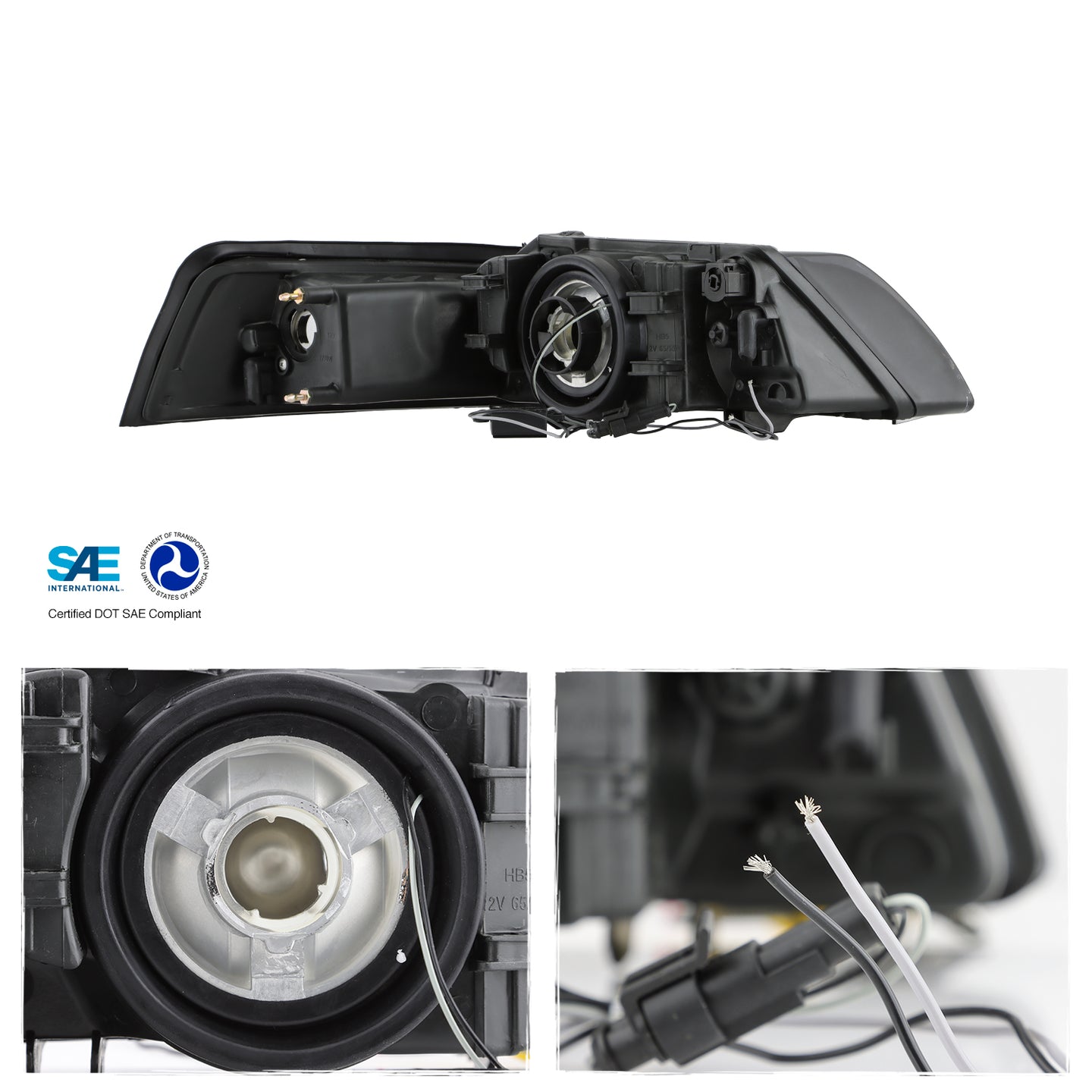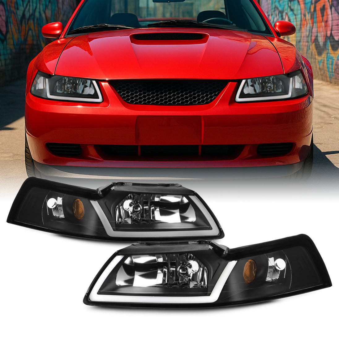 AKKON - Fit 1999 2000 2001 2002 2003 2004 Ford Mustang 99-04 Halogen Type Headlights w/LED DRL Headlamp Black Housing OE Style Direct Replacement