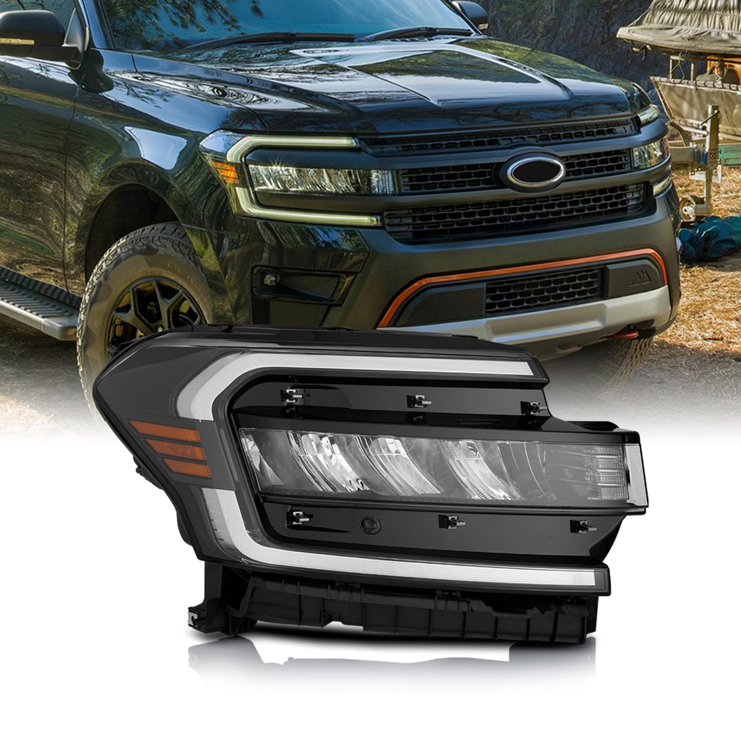 AKKON - Fit 2022 2023 2024 Ford Expedition 22-24 [Full LED] Non DRL Black Housing Headlight Headlamp OE Style Passenger Right Side Direct Replacement
