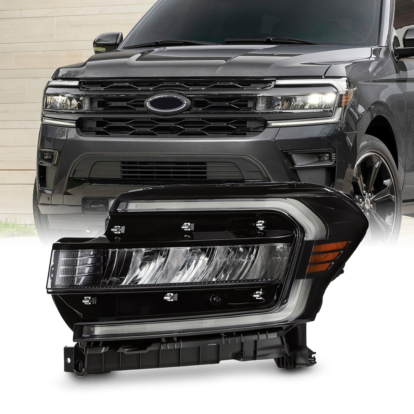 AKKON - Fit 2022 2023 2024 Ford Expedition 22-24 Full LED w/ LED DRL Black Housing Headlight Headlamp OE Style Driver Left Side Direct Replacement