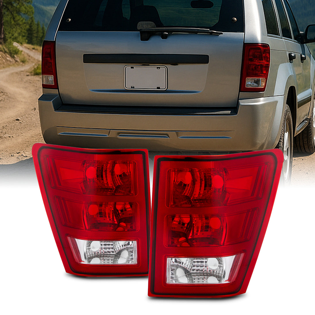 AKKON - Fit 2005 2006 Jeep Grand Cherokee 05-06 Halogen Type Tail Lights Rear Brake Lamp Red Clear OE Style Direct Replacement Driver - Passenger Side