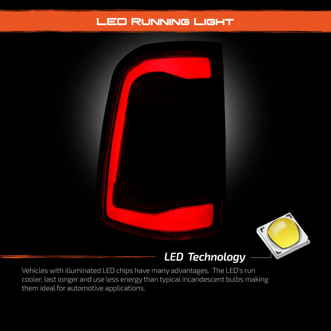 AKKON - Fit 2019-2023 Dodge Ram 1500 Rebel Not-Included Blind Spot Sensor LED Tail Light Rear Lamp Assembly OE Style Black Red Left